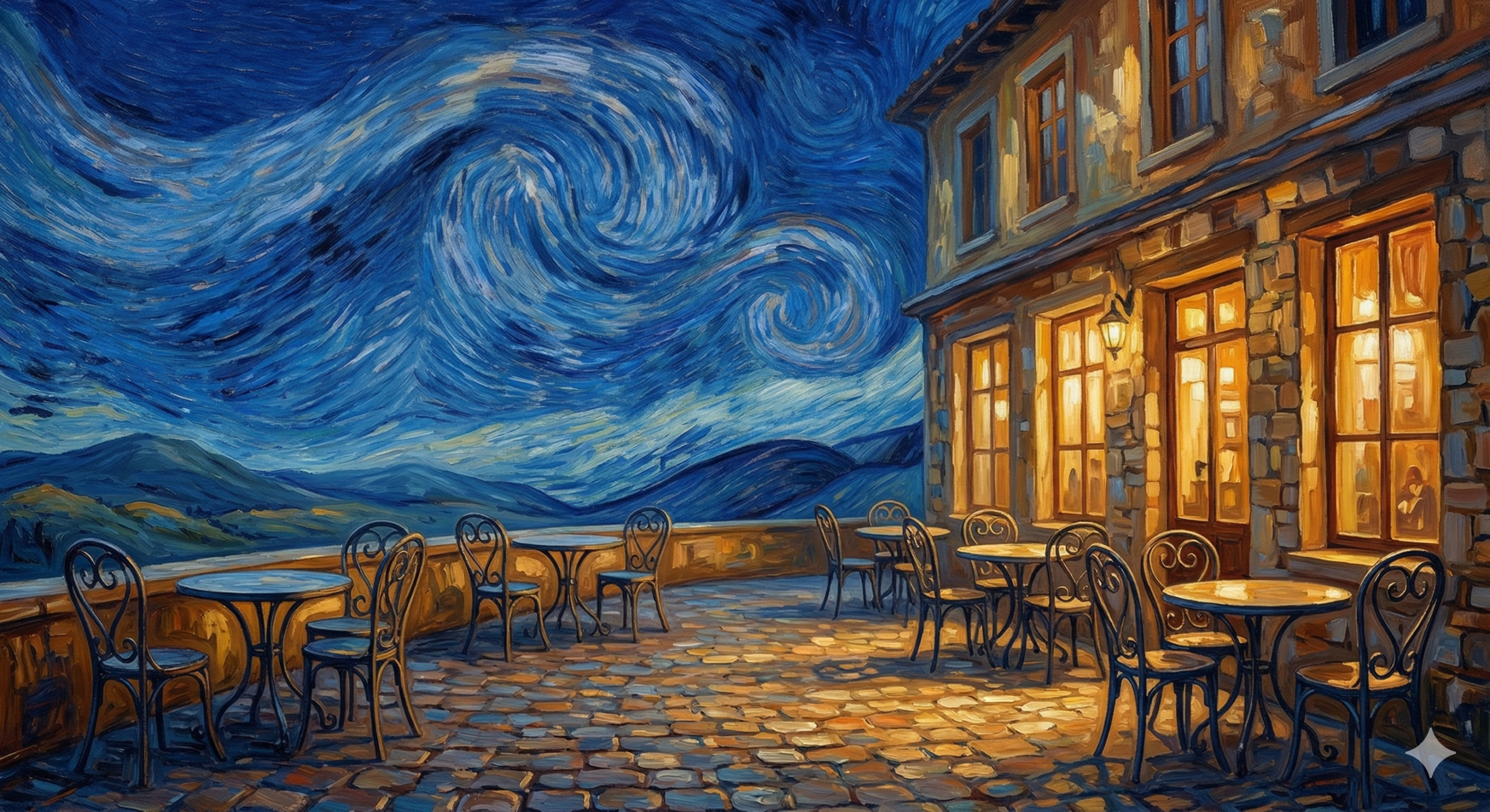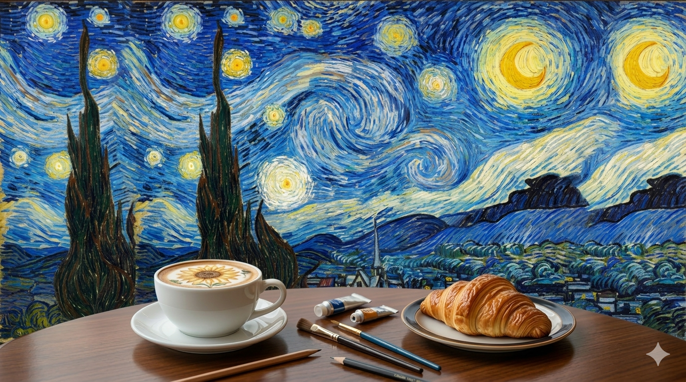 En Las Musas, cada taza nace de la inspiración artística. Nos inspiramos en la intensidad y emoción de Vincent van Gogh para crear un espacio donde el café, el arte y la creatividad se encuentran