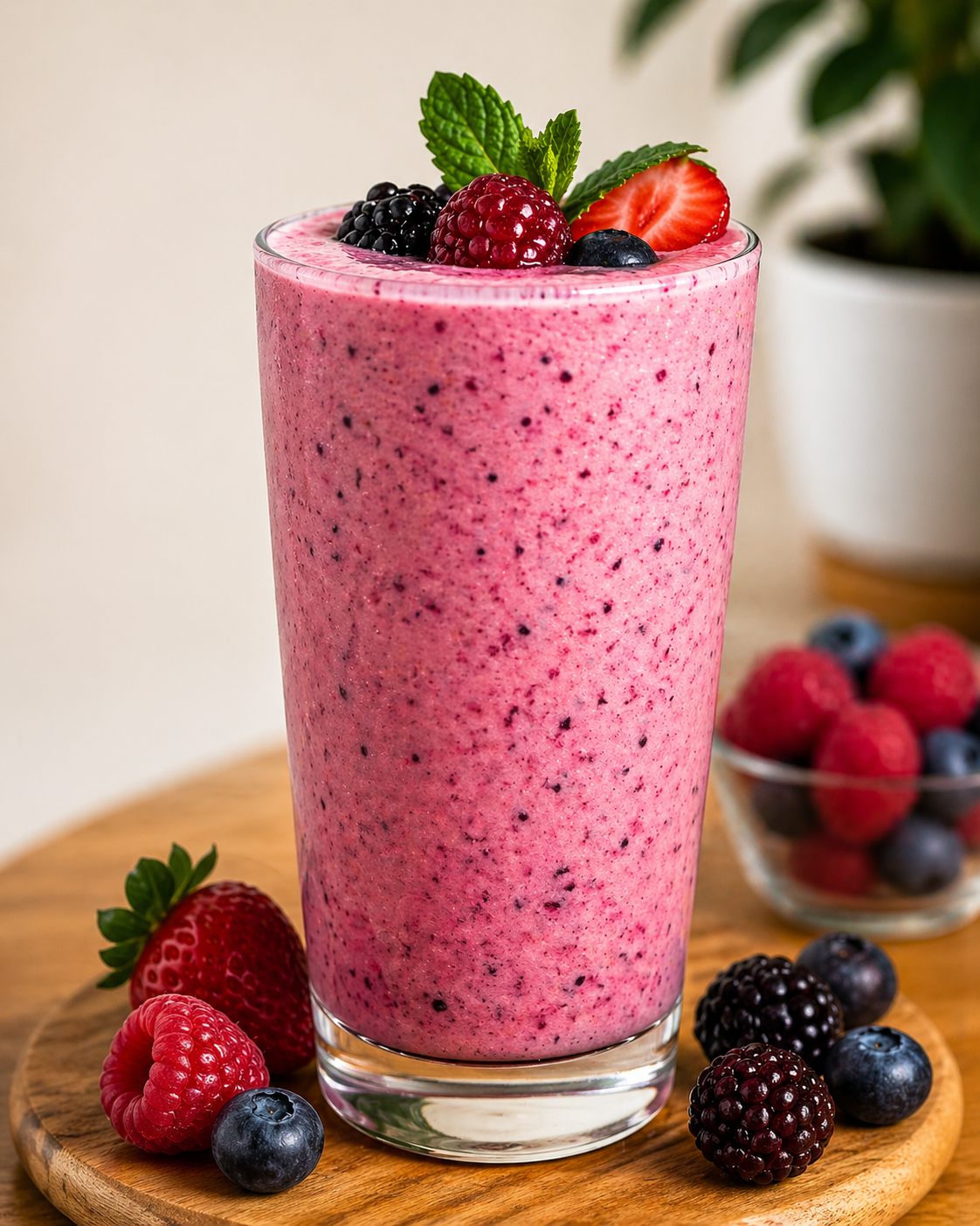 Bebida suave y cremosa que combina la intensidad de los frutos rojos con un toque de leche, logrando una textura más densa y un equilibrio perfecto entre lo dulce y lo ligeramente ácido.